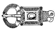 7. Пряжки с прямоугольным щитком с тисненым изображением льва.