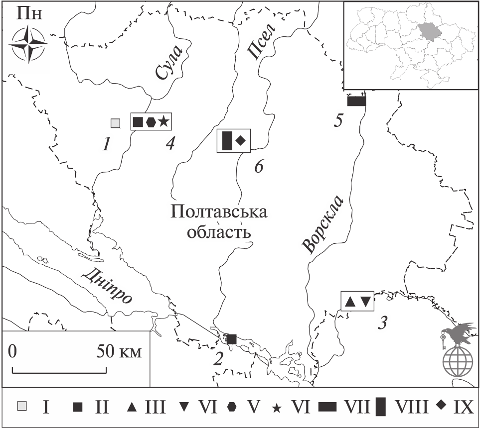 Фибулы эпохи раннего средневековья юга Восточной Европы всегда были в центре внимания исследователей (Родинкова 2011, с. 240-242). Тем и обусловлен особый интерес к новым находкам. В частности, на территории Полтавской обл. выявлено фибулы вблизи сел Малый Вязовок, Павловка, Шедиево (2 экз.), Засулля-Мгар (3 экз.), Родители и Кузнецы (2 экз.) (рис. 1, 2). Именно их анализа и посвящена статья.