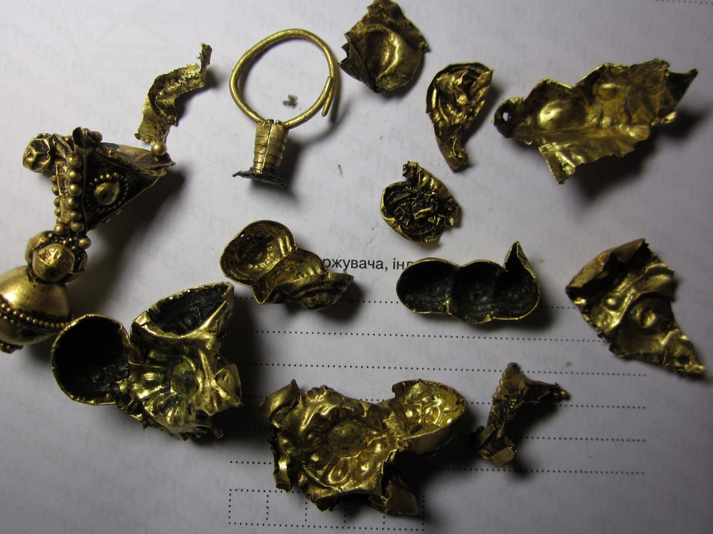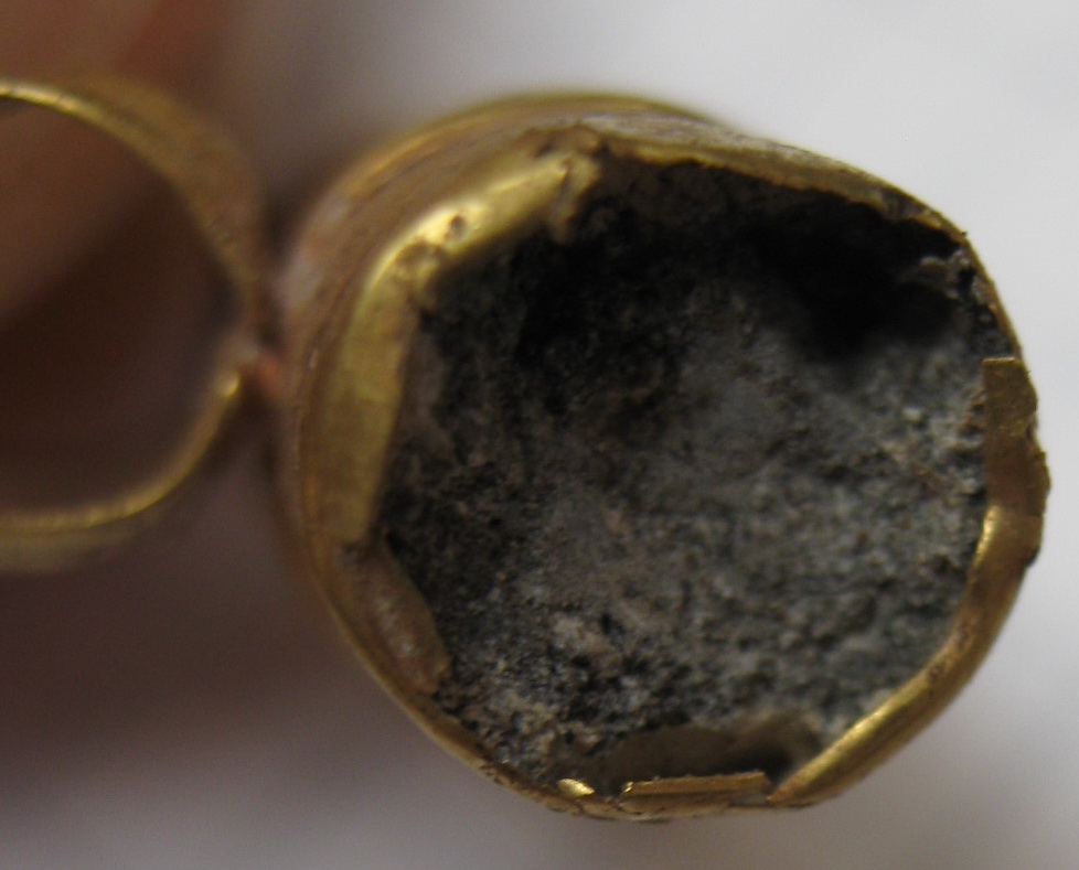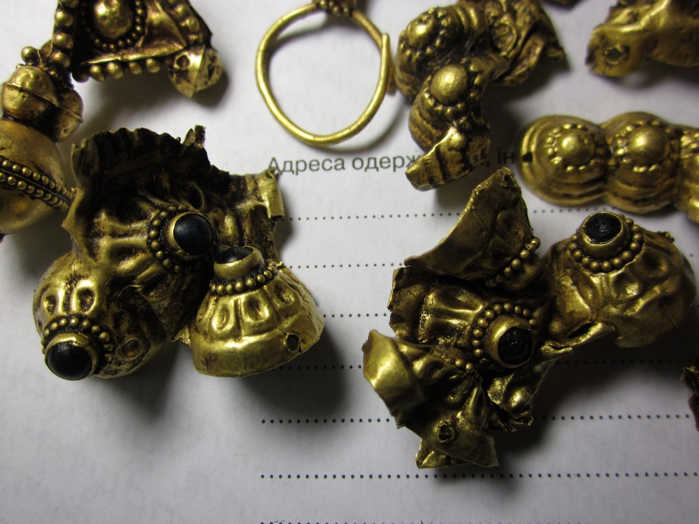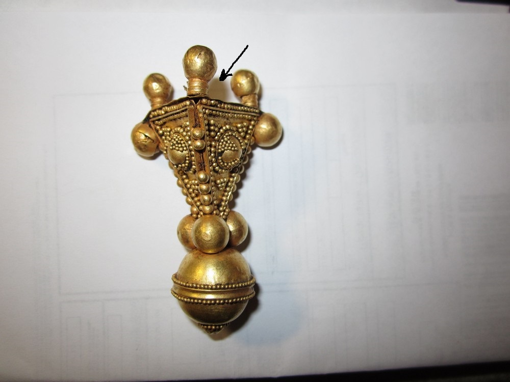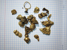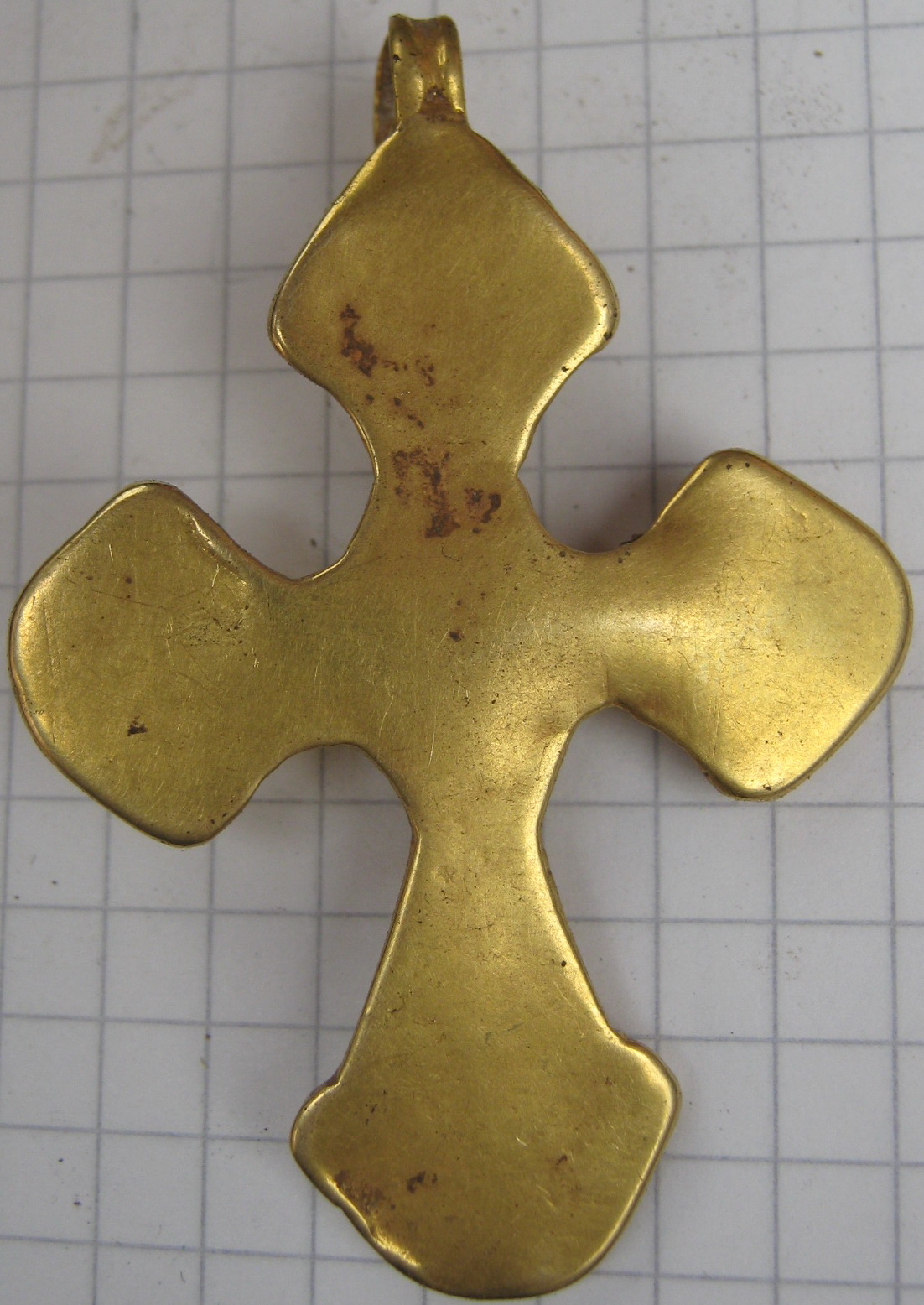 Золотой крест с отдельной от него золотой трубкой представил на Домонгол искатель Алексей2010. По словам искателя крест полый внутри, что в общем видно по фото, а регион находки Крым. Вероятнее всего, золотая трубка служило задней застежкой-противовесом нагрудной цепи на которой носился этот крест. В Крыму известен пример подобной находки на скелете 6 в погребальной камере 257 из Ески Кермен (по Айбабин 1982). Также известен подоббный крест VII-VIII вв. из погребения у с. Гладковка (Келегейские хутора), Херсонская область. Раскопки 1927 г.