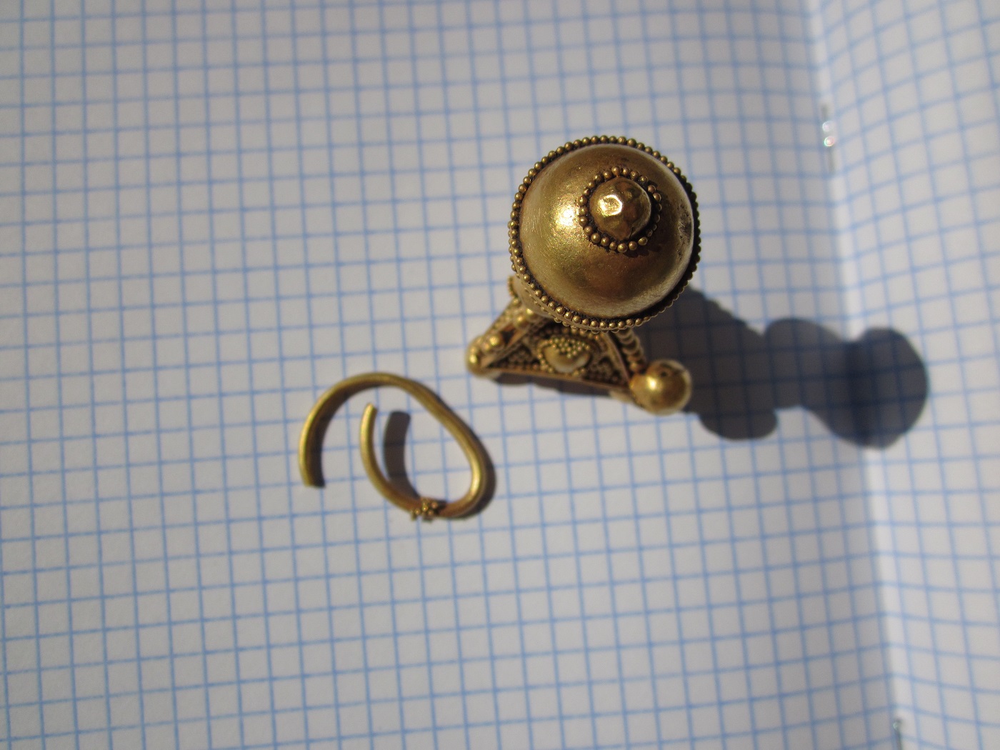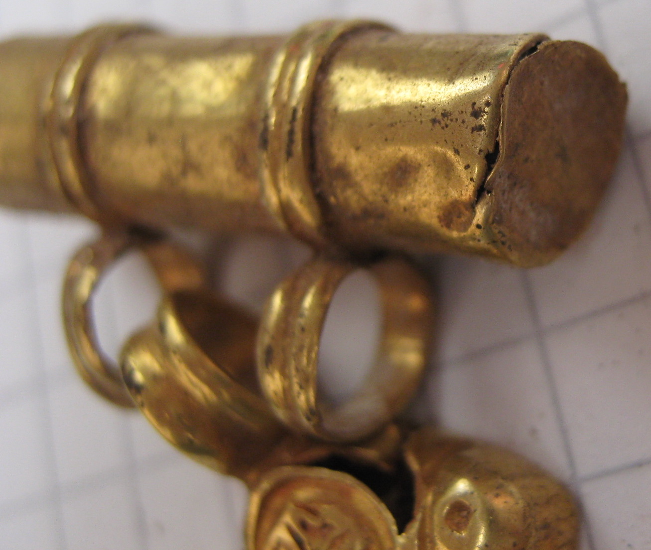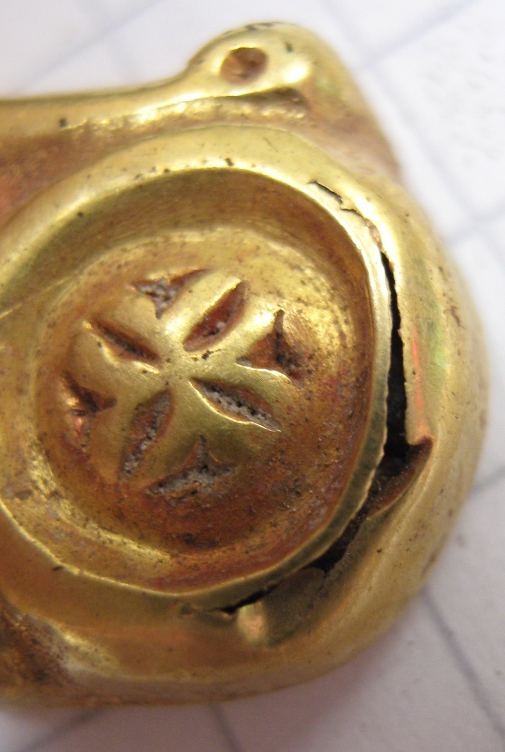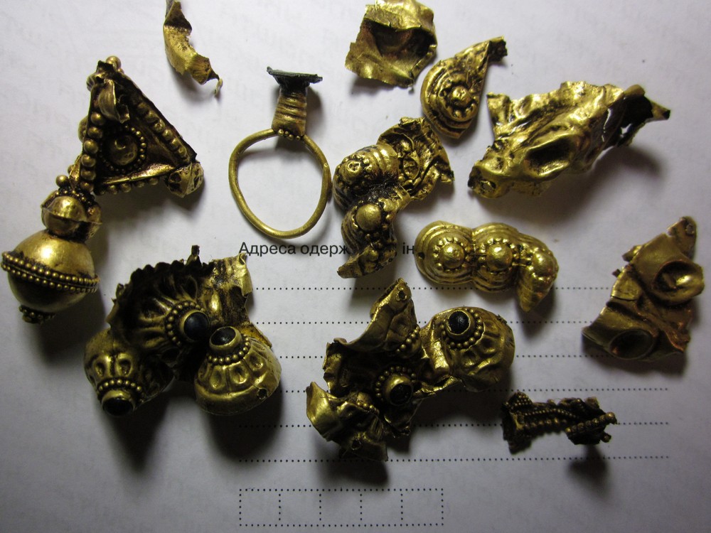 Золотой крест с отдельной от него золотой трубкой представил на Домонгол искатель Алексей2010. По словам искателя крест полый внутри, что в общем видно по фото, а регион находки Крым. Вероятнее всего, золотая трубка служило задней застежкой-противовесом нагрудной цепи на которой носился этот крест. В Крыму известен пример подобной находки на скелете 6 в погребальной камере 257 из Ески Кермен (по Айбабин 1982). Также известен подоббный крест VII-VIII вв. из погребения у с. Гладковка (Келегейские хутора), Херсонская область. Раскопки 1927 г.