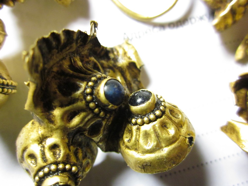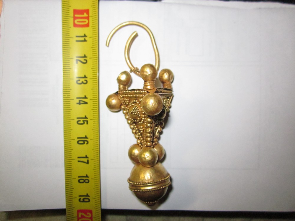 Находчик, во время продажи на аукционе, указал что регион находки Полтавская обл., и больше ни каких либо дополнительных сведений. Однако нам известно что подобные серьги находили в раннесредневековых погребальных комплексах Украины. Например широко известный «Глодоский клад», который на самом деле оказался погребением, датировано было рубежом VII-VIII века, большинство предметов из которого имело византийское происхождение.