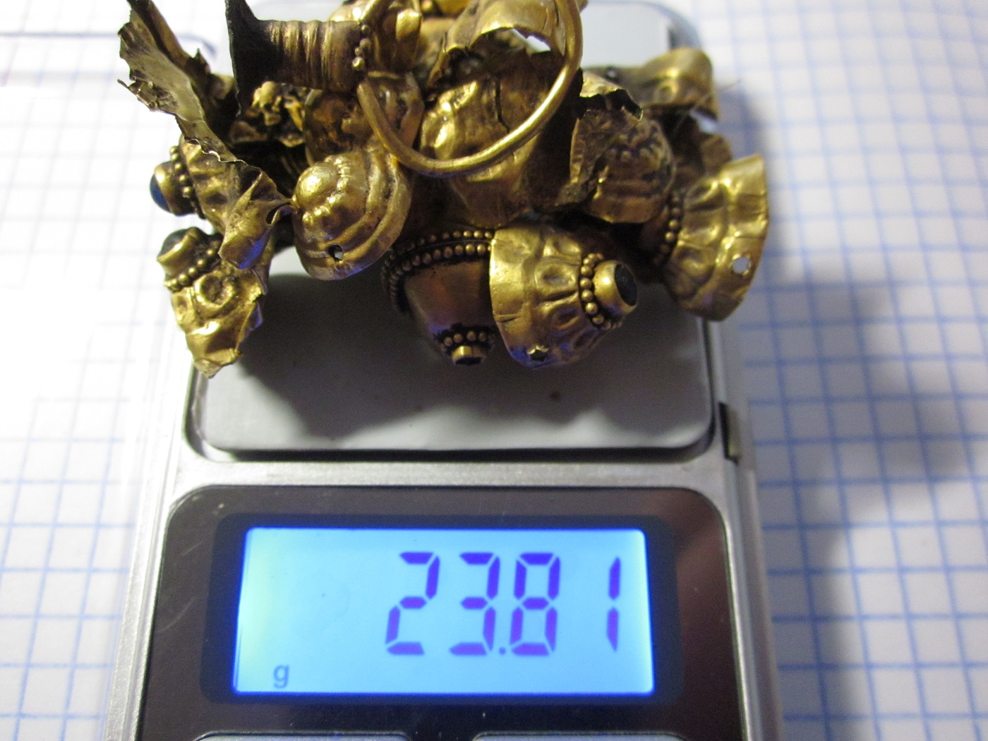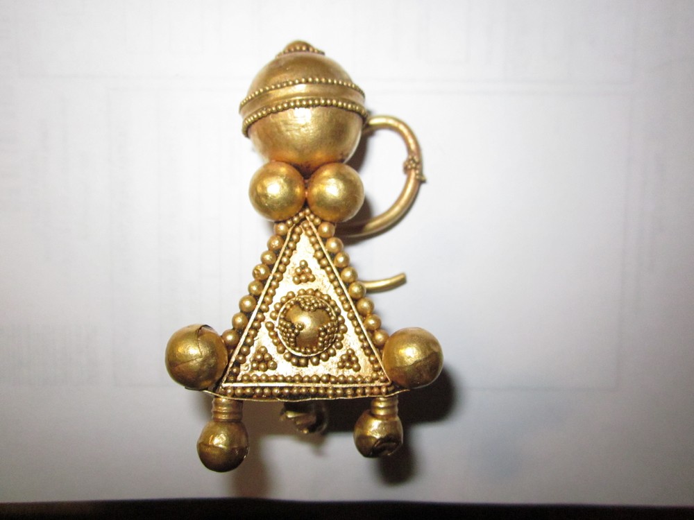 20 мая 2015 года кладоискатель крам-тор показал на Виолити пару крупных золотых колтов. Один колт хорошо сохранился, от второго осталось большое количество обломков. Однотипные украшения считаются привесками к женскому головному убору, поэтому назван мной «колт», но есть основания предполагать что это могли быть и серьги. Колт представляют собой перевернутую вверх основанием трехстороннюю вытянутую пирамиду, украшенную зернью и крупными золотыми шариками. Вес хорошо сохранившейся 33.43 грамма. Как легко понять по фотографиям несмотря на относительно большой размер, такой скромный вес изделия обеспечивается тем что оно полое внутри. По этой причине эти и подобные произведения искусства раннесредневековых ювелиров очень хрупкие.