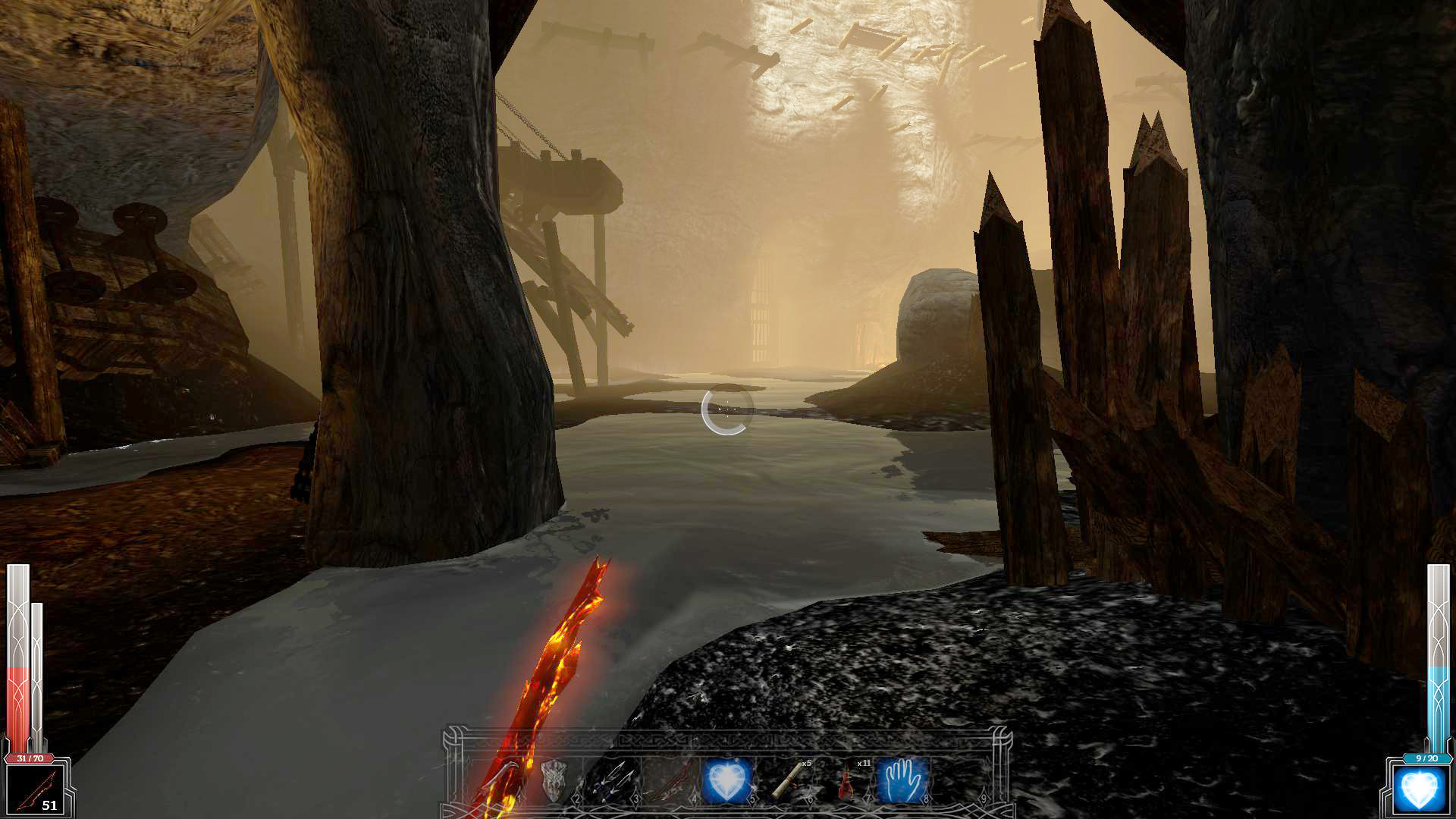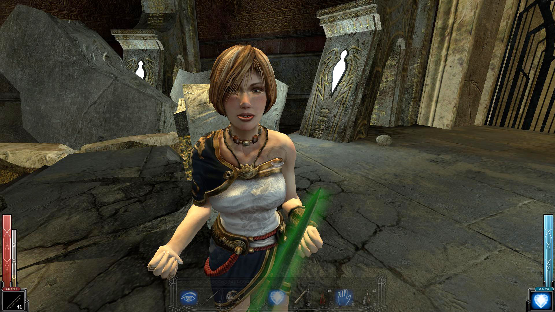 Те, кто знаком с игрой Half-Life 2 уже могут себе представить основные возможности по взаимодействию с окружающим миром в Dark Messiah, т.к. игры выполнены на общем движке Source. В Dark Messiah можно ломать деревянные предметы или поджигать их. Любые предметы можно поднимать (кнопка E) и бросать, выбирая силу броска длительностью нажатия на левую кнопку мыши. Помимо предметов, можно поднимать и перетаскивать тела врагов. Умение плыть под водой ограничивается выносливостью, которую можно развивать, а лазание по вертикальным цепям иногда позволяет отыскать секрет или перебраться в новую локацию, жаль только когда находишься на цепи, нет возможности использовать оружие и магию. Кое-где на карте припрятаны полезные предметы, которые находятся либо в ящиках со специальным символом, либо могут попасться в совершенно неожиданных местах.