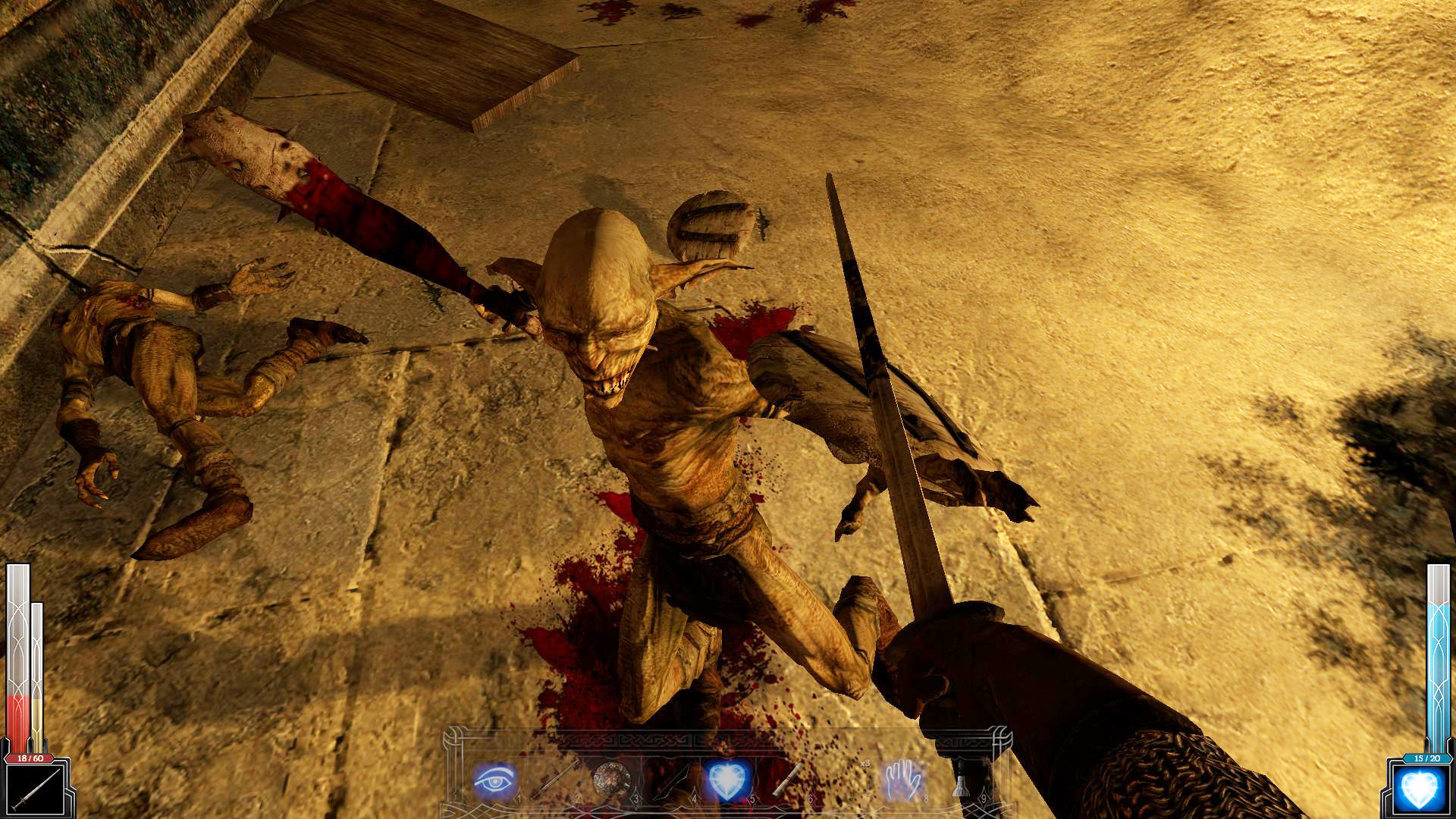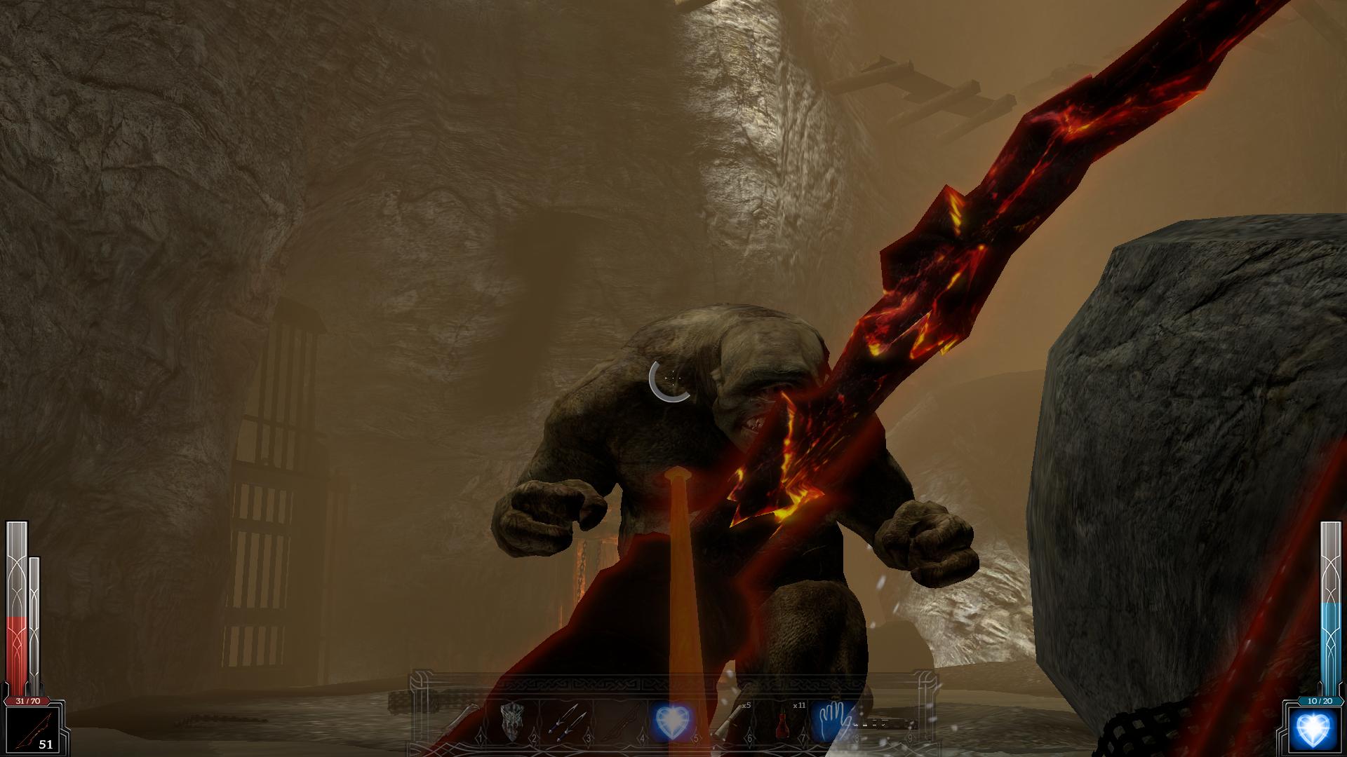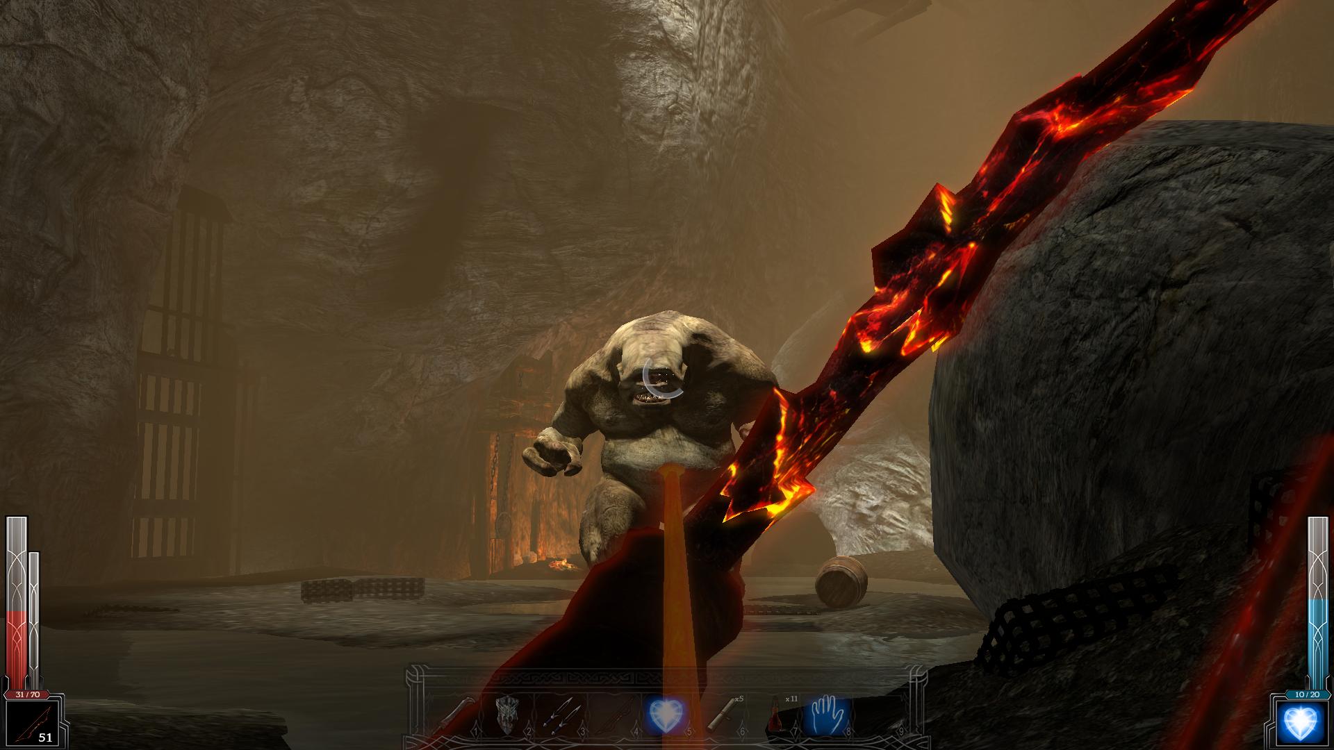 Реализация ближнего боя, особенно с использованием холодного оружия, является одним из главных достоинств игры. Многообразие способов применения оружия приближается к современным играм-файтингам. Наличие мощного удара (Power strike), кровавых казней (Fatality) и "пронзания" (Impale) (а по сути это ещё один способ "добить" противника), раскрывает многообразие способов умертвить врага. Так помимо лихорадочной рубки левым кликом, мы можем воспользоваться тем самым Power strike, который вызывается длительным нажатием на левую кнопку мыши, а в сочетании с кнопками направлениями движения обретает различные формы. Если сражаешься достаточно долго, то расположенный внизу экрана слева показатель адреналина постепенно заполняется, и когда от адреналина уже "рвет крышу", наш взор становится огненным и уже знакомый Power strike приобретает еще большую мощь, превращая удар в кровавую казнь.