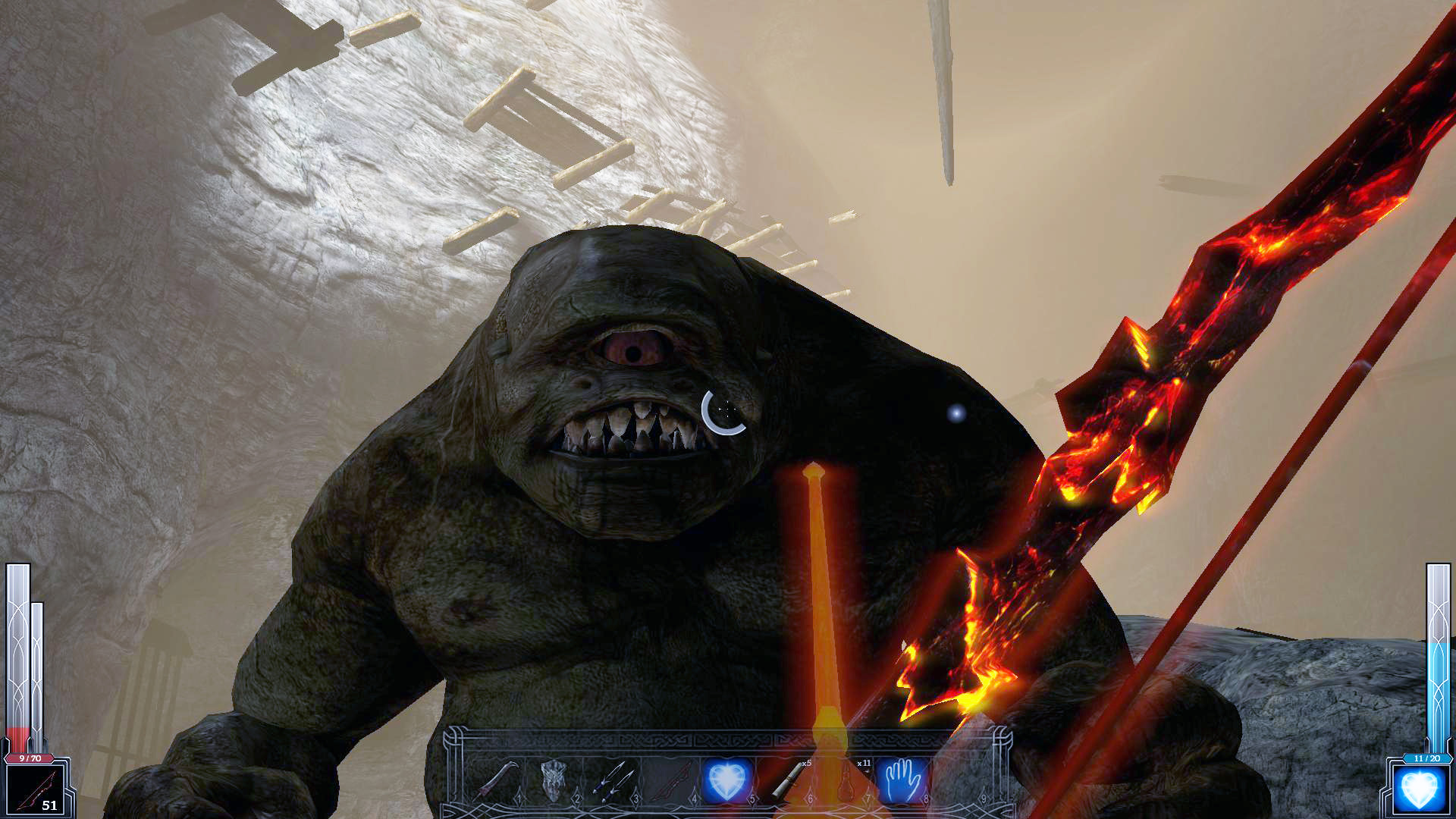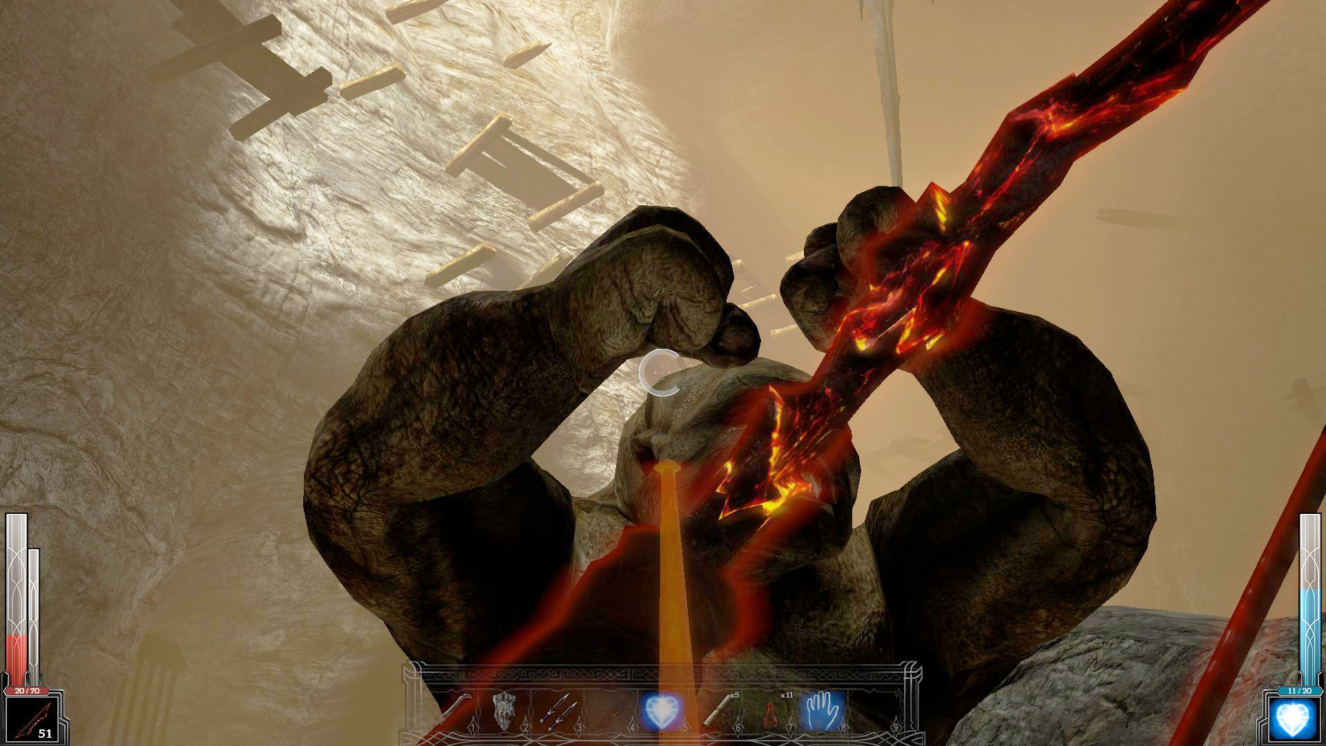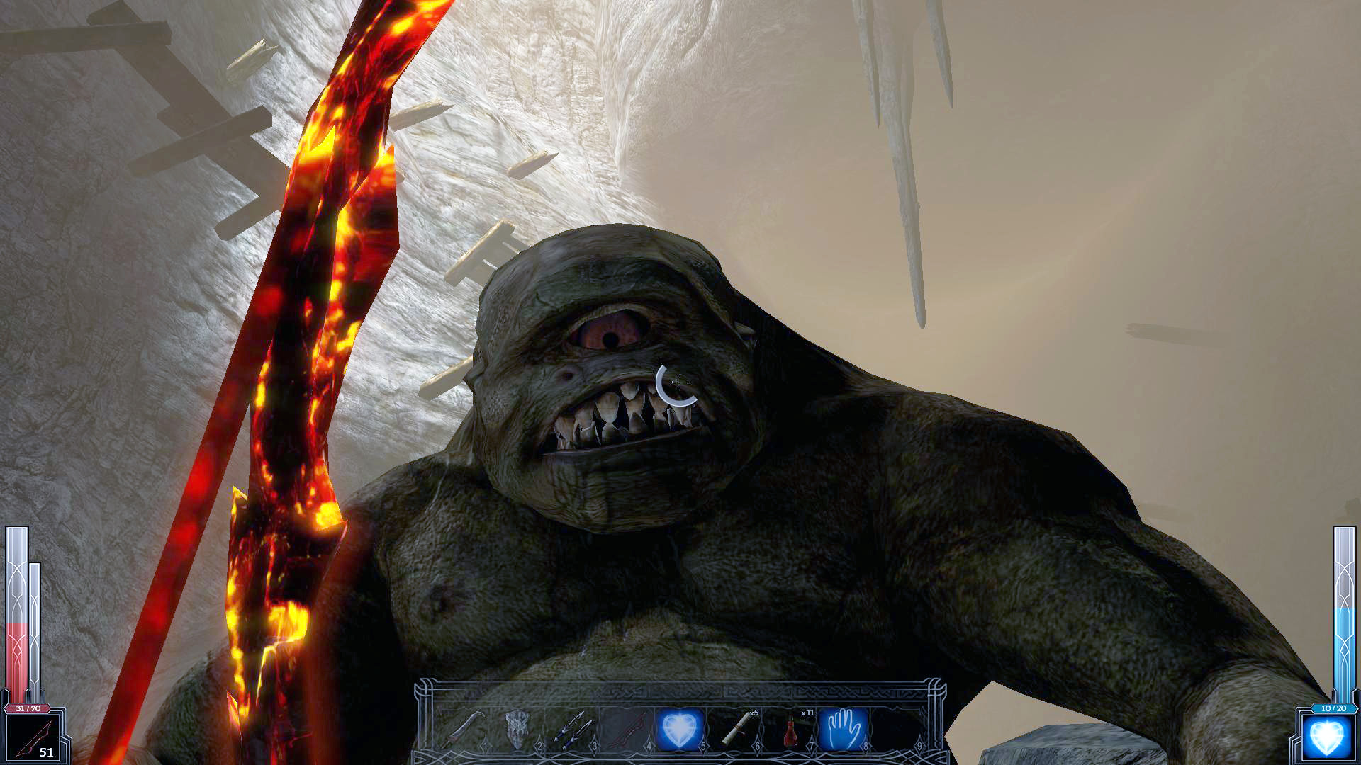 Реализация ближнего боя, особенно с использованием холодного оружия, является одним из главных достоинств игры. Многообразие способов применения оружия приближается к современным играм-файтингам. Наличие мощного удара (Power strike), кровавых казней (Fatality) и "пронзания" (Impale) (а по сути это ещё один способ "добить" противника), раскрывает многообразие способов умертвить врага. Так помимо лихорадочной рубки левым кликом, мы можем воспользоваться тем самым Power strike, который вызывается длительным нажатием на левую кнопку мыши, а в сочетании с кнопками направлениями движения обретает различные формы. Если сражаешься достаточно долго, то расположенный внизу экрана слева показатель адреналина постепенно заполняется, и когда от адреналина уже "рвет крышу", наш взор становится огненным и уже знакомый Power strike приобретает еще большую мощь, превращая удар в кровавую казнь.