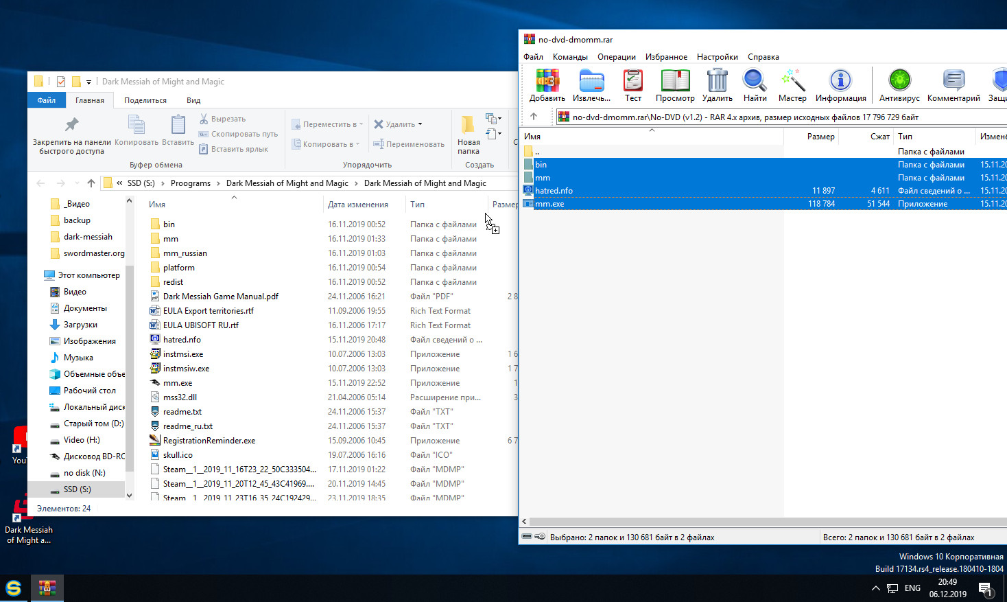 Если есть проблемы, то ещё существует для запуска этой игры без диска незащищенный EXE-файл из ДЕМО-версии (работает со всеми версиями игры) – dark-messiah/mm.rar (3.3 Mb). Однако его я не использовал, так как Dark Messiah of Might and Magic спокойно проходится после применения той отвязки.