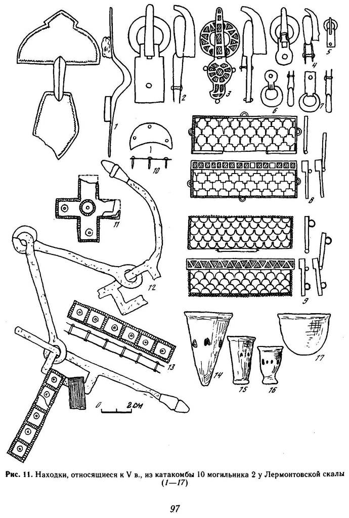 Находки, относящиеся к V в., из катакомбы 10 могильника 2 у Лермонтовской скалы