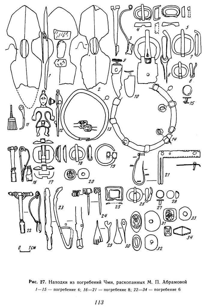 Находки из погребений Чми, раскопанных М.П. Абрамовой