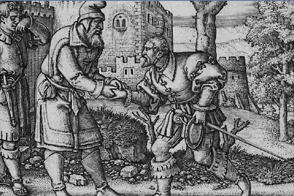 Молодой человек вооружен рапирой. Блудный сын 1. Ханс Себалд Бехем, 1540