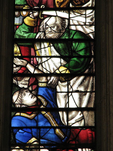 Деталь картины "Арест Христа", 1520 год, Бургундия. Хранится в Musée des Beaux-Arts  в Дижоне, Франция.  Один из витражей в Королевском колледже в Кембридже. Верхняя деталь алтаря церкви Девы Марии в Кракове. 1477-89 годы. Здесь у св. Петра фальчион без скоса, обух просто на четверть заточен. Интерес взывает сабля у Малкуса.