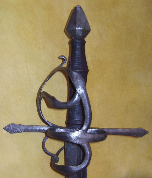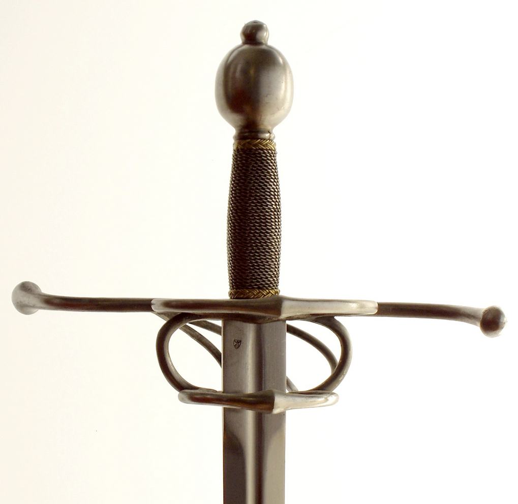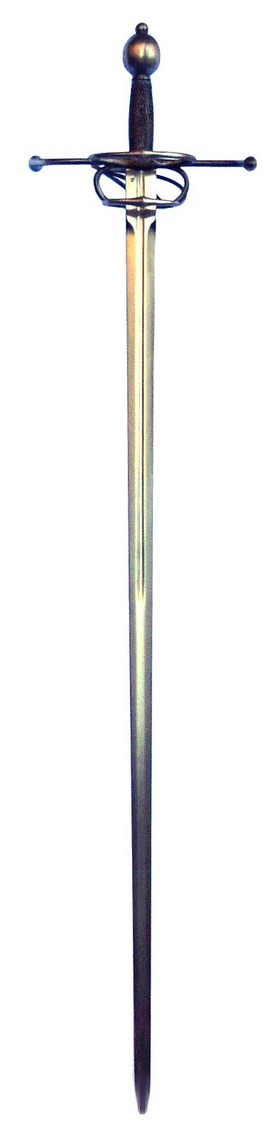 Шпага от итальянского "spada" и испанского "espada" которые переводятся как меч – клинковое оружие с длинным прямым узким или средней ширины клинком и сложной гардой, состоящей из чашки, одной или нескольких дужек различной формы и крестовины, или только из системы дужек и крестовины. Черенок рукояти как правило обматывается проволокой. В 15-16 веках ни по весу ни боевым качествам не уступающая рыцарскому мечу, и благодаря новым деталям рукояти даже несколько превосходящая его. Некоторое облегчение клинка было нивелировано утяжелением рукояти.