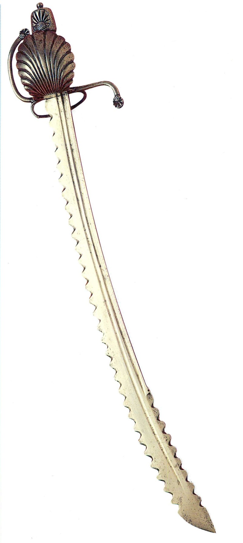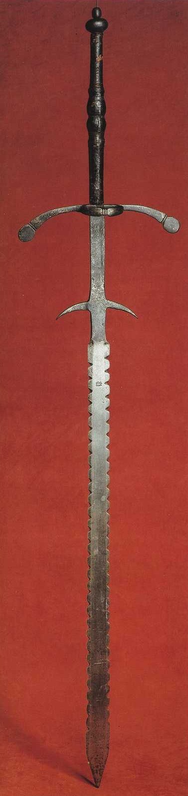 Немецкая сабля с коротким кривым клинком, ок. 1590-1610 г. Применялось как абордажная сабля. Немецкая сабля с коротким кривым клинком, ок. 1590-1610 г. Применялось как абордажная сабля. Зазубрины вовсе не обязательная деталь данного оружия.