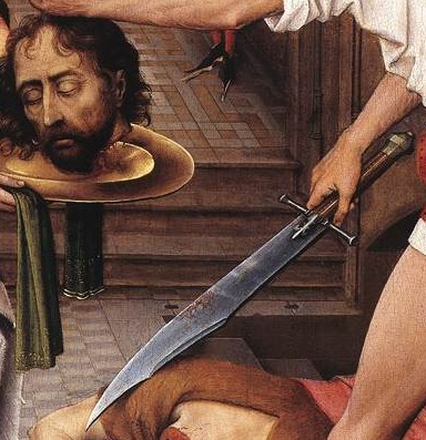 Из коллекции Британского музея, предположительно середина 13 века Фальчион Вестминстерская библия 1262-1277 г. Алтарь Св. Иоанна. Усекновение главы Иоанна Крестителя, фрагмент правого крыла 1455-1460 г. Gemaldegalerie, Берлин, Германия. картина полностью