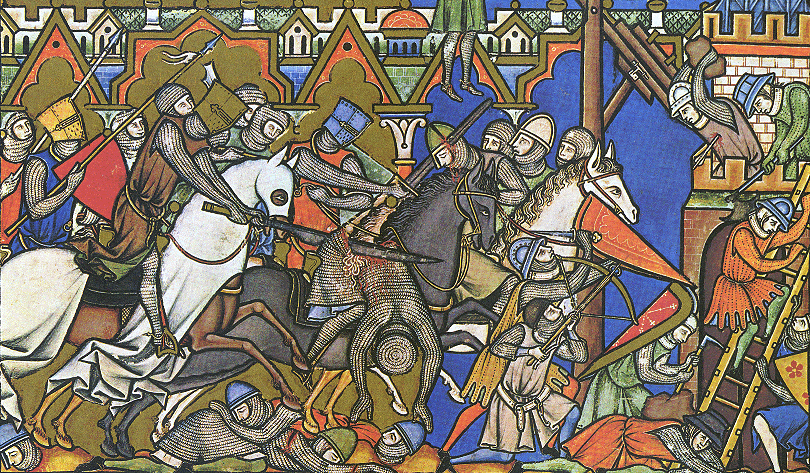 эта картинка полностью однозначно не понятно: меч у воина или просто наконечник глефы. Прорисовка из Queen Mary's Psalter Фошард из Романа об Александе
