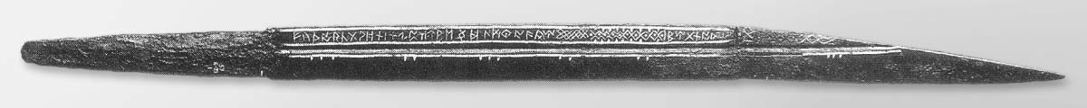 Найденый в реке Темзе скрамасакс, единственный пример с полностью сохранившейся англосаксонской рунической надписью.