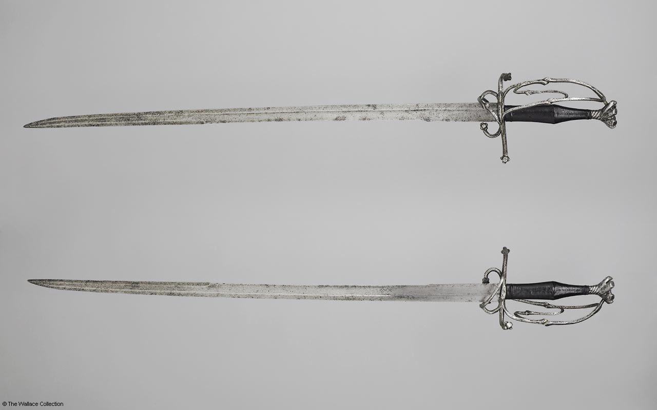 В английской терминологии то что принято считать нами шпагой – это по английски – "Smallsword" по немецки "Galadegen", то есть маленький меч и уменьшительно-ласкательное от "Рапиры". Эти термины применяются для невоенного оружия, весом около 700 грамм. В советском оружиевединье под шпагой имеются в виду и мечи с корзинчатой гардой, которые у нас также называют "Военными шпагами". Только в середине 17 века шпаги стали облегчаться и приняли привычный нам вид.