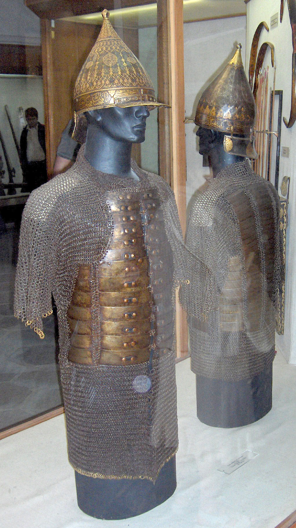 Кольчато-пластинчатый доспех 15 века (но шлем 16 века) в дворце Топкапу в Стамбуле. И "Рязанский бацинет" показывают новый стиль Руско-Литовской брони 15 века.