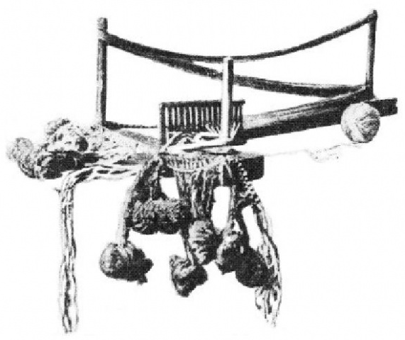 Рис. 38. Фрагмент вертикального ткацкого станка (по М. Гофману) |