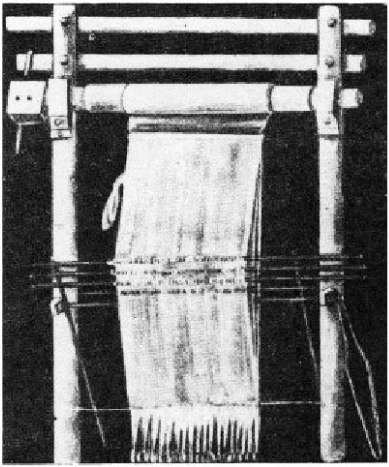 | Рис. 34. Вертикальный ткацкий станок (по Olaviuna, Исландия XVIII в.) |