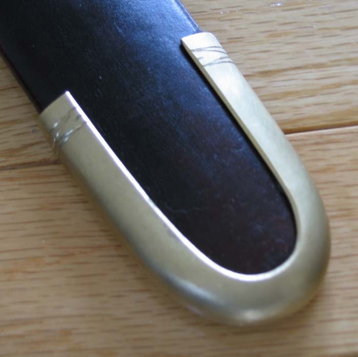 Собственно "бюджетность" здесь проявилась в том что кожаное покрытие было взято от старого дивана. Пряжки и ремешки были куплены в магазине. Но наконечник был сделан самостоятельно.