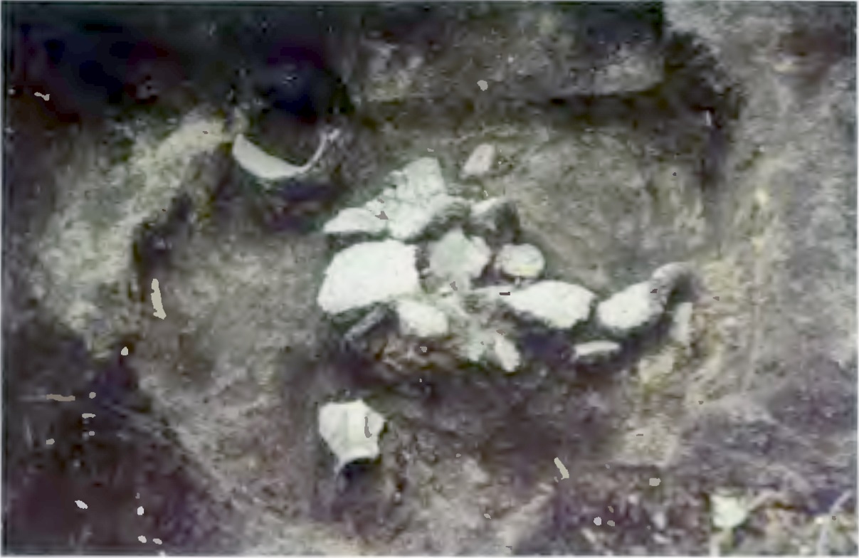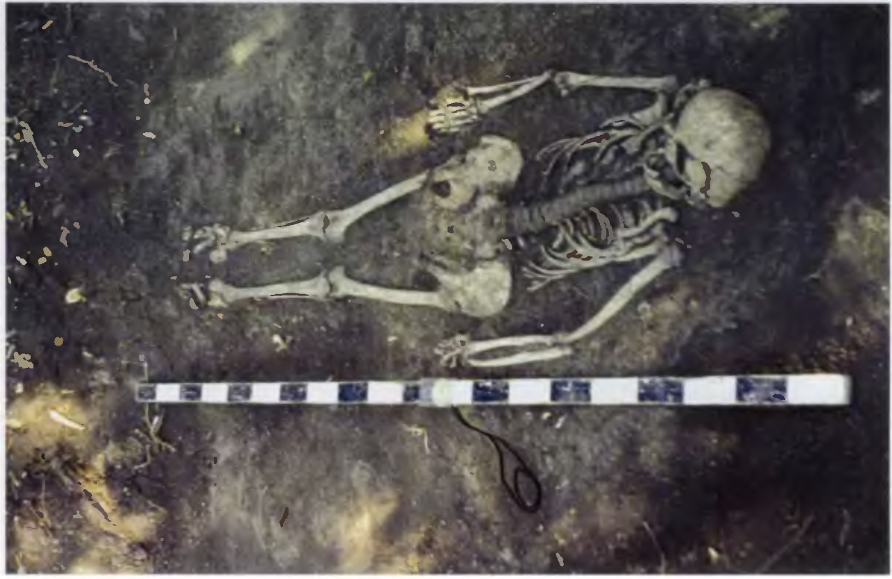 Рис. 65. Сидоровское городище. Раскоп 5. Погребение 1  Рис. 66. Сидоровское городище. Раскоп 5. Погребение 1. Деталь.