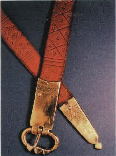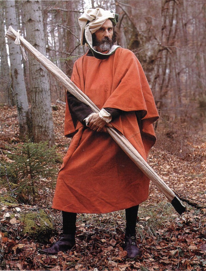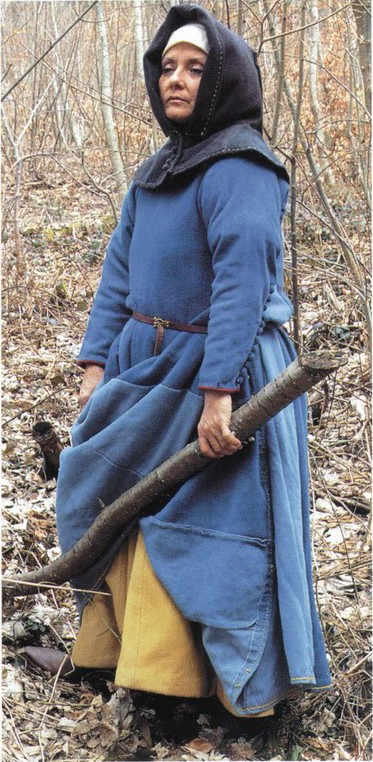 (А) Рубаха была основным предметом мужской одежды с раннего средневековья. Рубаха надевалась через голову, постепенно ее покрой все больше усложнялся. Обычно рубаху шили из светлой ткани, украшая ее декоративными полосами и узорами. Известно, что саксонский феодал подарил аббатству Эли рубаху, пошитую из красно-пурпурной ткани, расшитой золотом.
