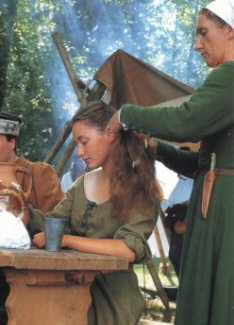 Но основной задачей женщин было превратить лагерь в более удобное место. Они готовили пищу, ухаживали за ранеными. Женщины носили одежду, приличную их социальному статусу, приспособленную к полевым условиям походного лагеря. Женщины благородных сословий проживали в просторных шатрах, в окружении многочисленных слуг. Солдатские жены, напротив, довольствовались самыми скромными условиями. В походных условиях редко носили слишком роскошные или чрезмерно фривольные платья.