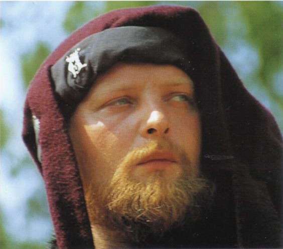 (C) Французский рыцарь (ок. 1333 г.) в тяжелом кольчужном подшлемнике с амортизатором и небольшой железной шапке, которые обеспечивают надежную посадку большою шлема. Из-под кольчуги видны рукава стеганого акетона. Локти дополнительно защищены круглыми металлическими дисками (rondel), закрепленными на шнурках.