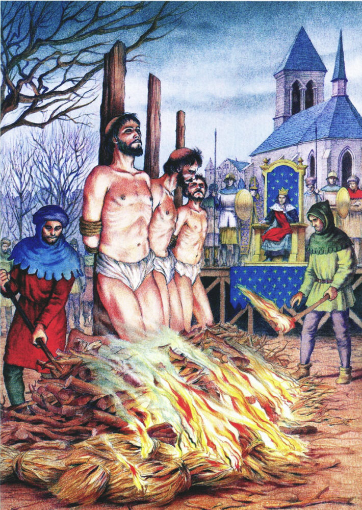 Спустя два года на острове среди Сены Жак де Моле и многие другие братья были сожжены. Перед смертью великий магистр отказался от вырванных под пыткой показаний и заявил о своей невиновности, и проклял короля и весь его род.
