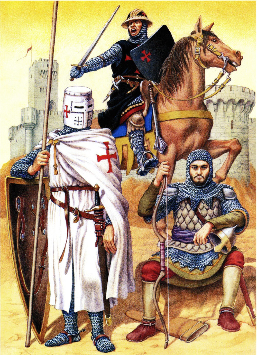 Другим новшеством, предложенным тамплиерами, было использование туркополов – сирийской наемной легкой конницы. Если рыцарская конница обладала огромным ударным потенциалом, но отличалась крайне низкой маневренностью, то легкие туркополы удачно дополняли возможности тамплиерской армии. Отлаженное взаимодействие между пехотой и легкой конницей было гарантией успеха. Армия тамплиеров имела свою иерархию и отличалась жесткой дисциплиной. Воины с готовностью получали приказы и исполняли их беспрекословно. Преимущество тамплиеров также заключалось в их единой экипировке, что делало отряды тамплиеров единообразными. Рыцари и сержанты постоянно упражнялись, оттачивая свое воинское мастерство.