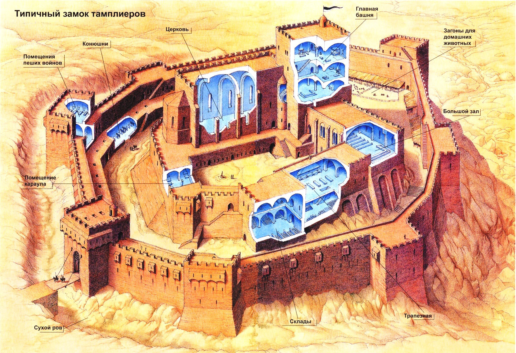 Но в центральной Сирии, Ливии и Палестине франкам пришлось все строить с нуля. Укрепления сооружались в соответствии с предъявляемым к ним требованиям. Например, существовали «осадные крепости», рассчитанные на то. чтобы выдерживать осаду любой продолжительности.