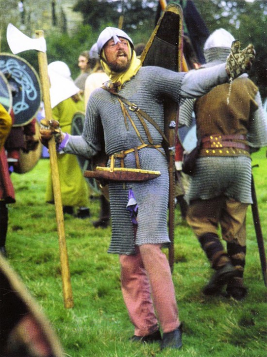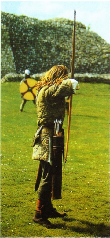 Лучники занимали боевое место сразу позади линии воинов, вооруженных мечами, топорами и копьями. Стрельба по противнику велась навесом, так. чтобы стрелы падали на противника сверху. Такая стрельба по площадям была достаточно эффективна. Например, при Гастингсе норманны сумели размягчить строй англосаксов, который затем прорвали кавалеристской атакой. Не случайно, что на гобелене из Байе из четырех ранений стрелами одно приходится в голову. Мы также знаем, что лучники обстреливали противника еще до начала сражения.