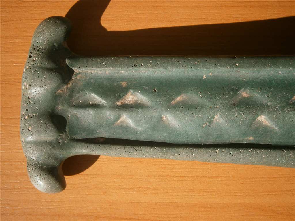 Подавляющее большинство акинаков Боспора Киммерийского представляют собой типичные экземпляры железного оружия скифского типа. И лишь незначительное число боспорских клинков имеет те или иные своеобразные черты, выделяющие их из общей массы широко распространенных на территории Евразии акинаков. Эти не так часто встречающиеся экземпляры оружия с синкретичным набором характеристик являются довольно ярким археологическим источником, который приобретает особое значение при изучении процессов взаимопроникновения эллинской (греки-колонисты) и варварской (скифы-номады) культур на ранних этапах их сосуществования. Именно к этой немногочисленной группе оружия относится публикуемый биметаллический меч из некрополя Артющенко-2.